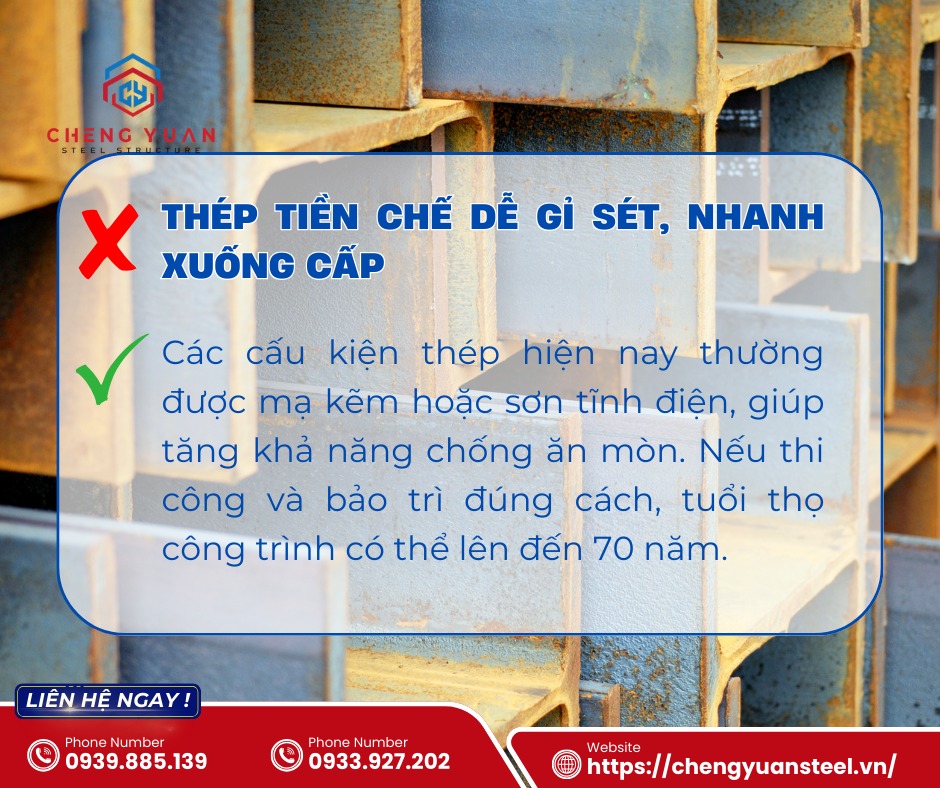 Gỉ sét là “kẻ thù” lớn nhất của thép. Khi thép bị oxy hóa, khả năng chịu lực suy giảm đáng kể, gây nguy hiểm cho toàn bộ kết cấu công trình.